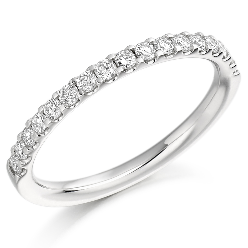 Ladies Platinum Diamond Wedding Band With Round brilliant Cut Pavé Set diamonds.