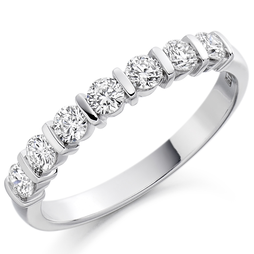 Beautiful ladies diamond wedding band with round brilliant cut diamonds set in a bar setting.