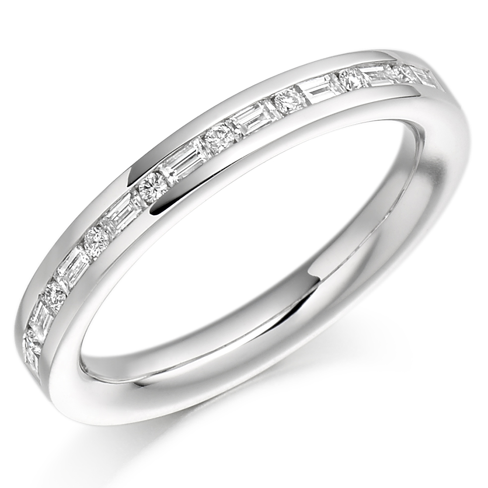 Ladies Diamond Wedding Band With Baguette And Round Brilliant Cut Channel Set Diamonds.
