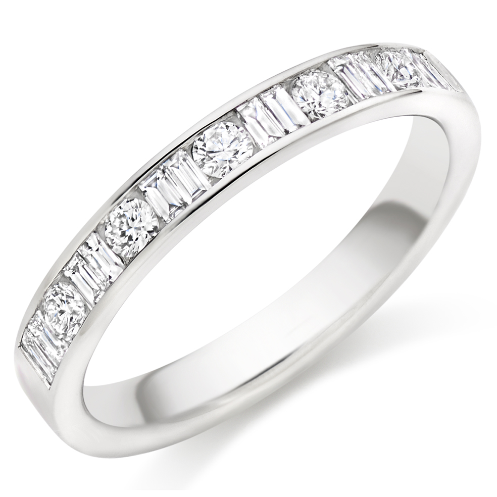 Ladies Diamond Wedding Band With Double Baguette And Round Brilliant Cut Channel Set Diamonds.