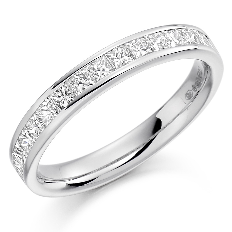 Ladies Diamond Wedding Band With Princess Cut Channel Set Diamonds.