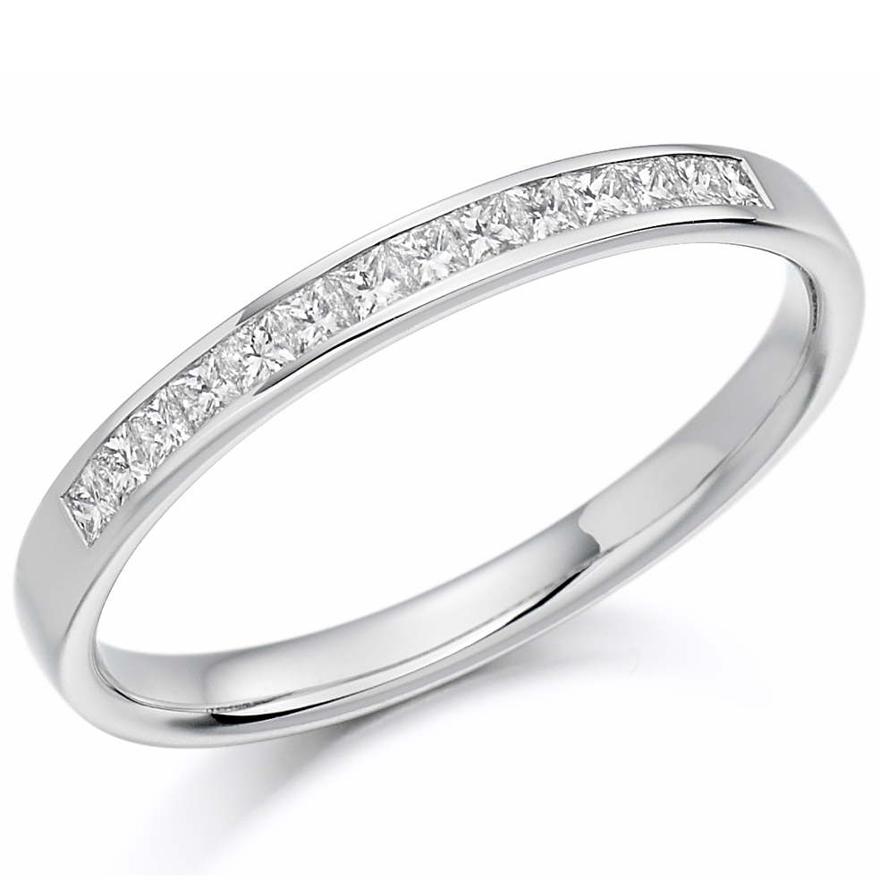 Ladies Platinum Diamond Wedding Band With Princess Cut Channel Set Diamonds.