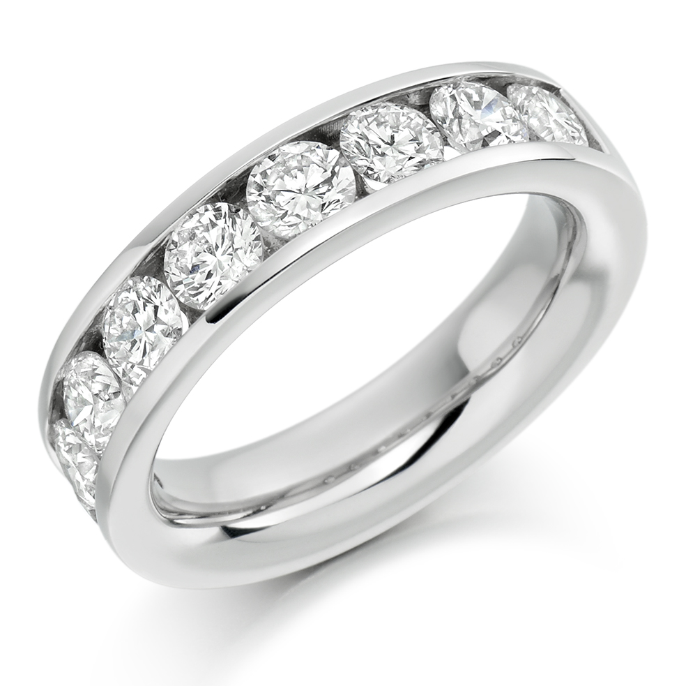 Ladies Platinum Diamond Wedding Band With Channel Set Round brilliant cut diamonds.
