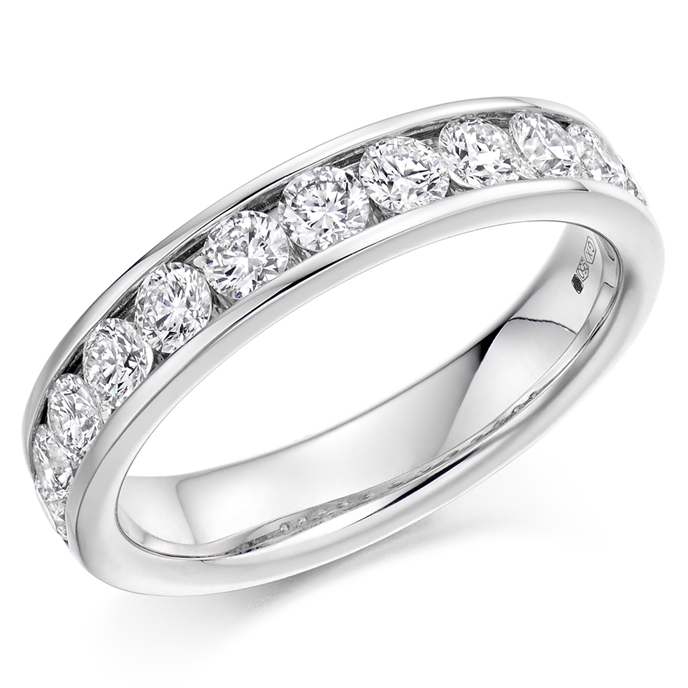 Beautiful Ladies diamond wedding band with channel set round brilliant cut diamonds