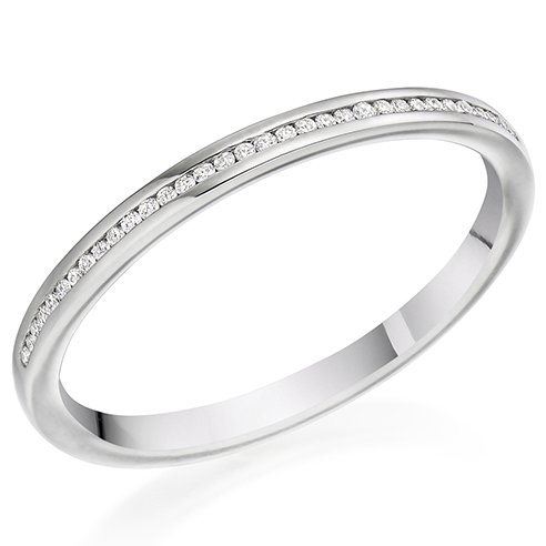 Ladies Platinum Diamond Wedding Band With Channel Set Round Brilliant Cut Diamonds.
