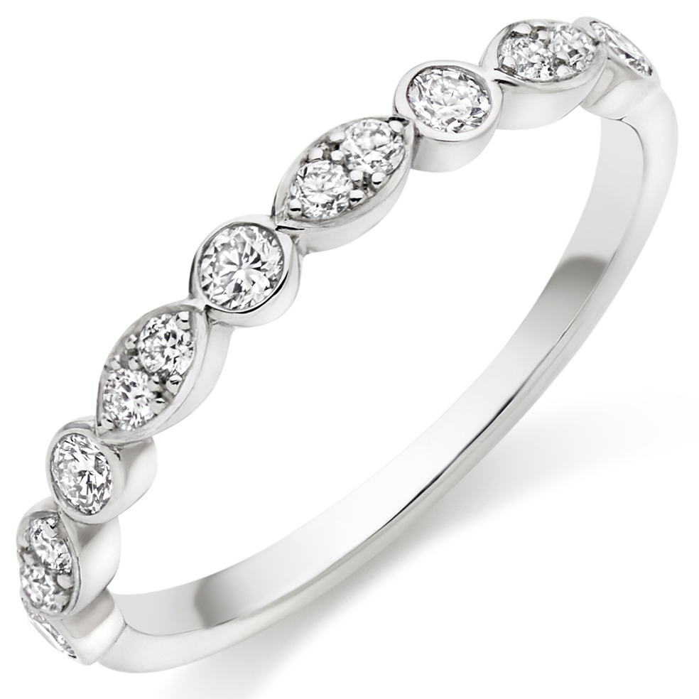Ladies Platinum Wedding Band With Round Brilliant Cut Diamonds Set In a Rubover And Grain Style Setting.