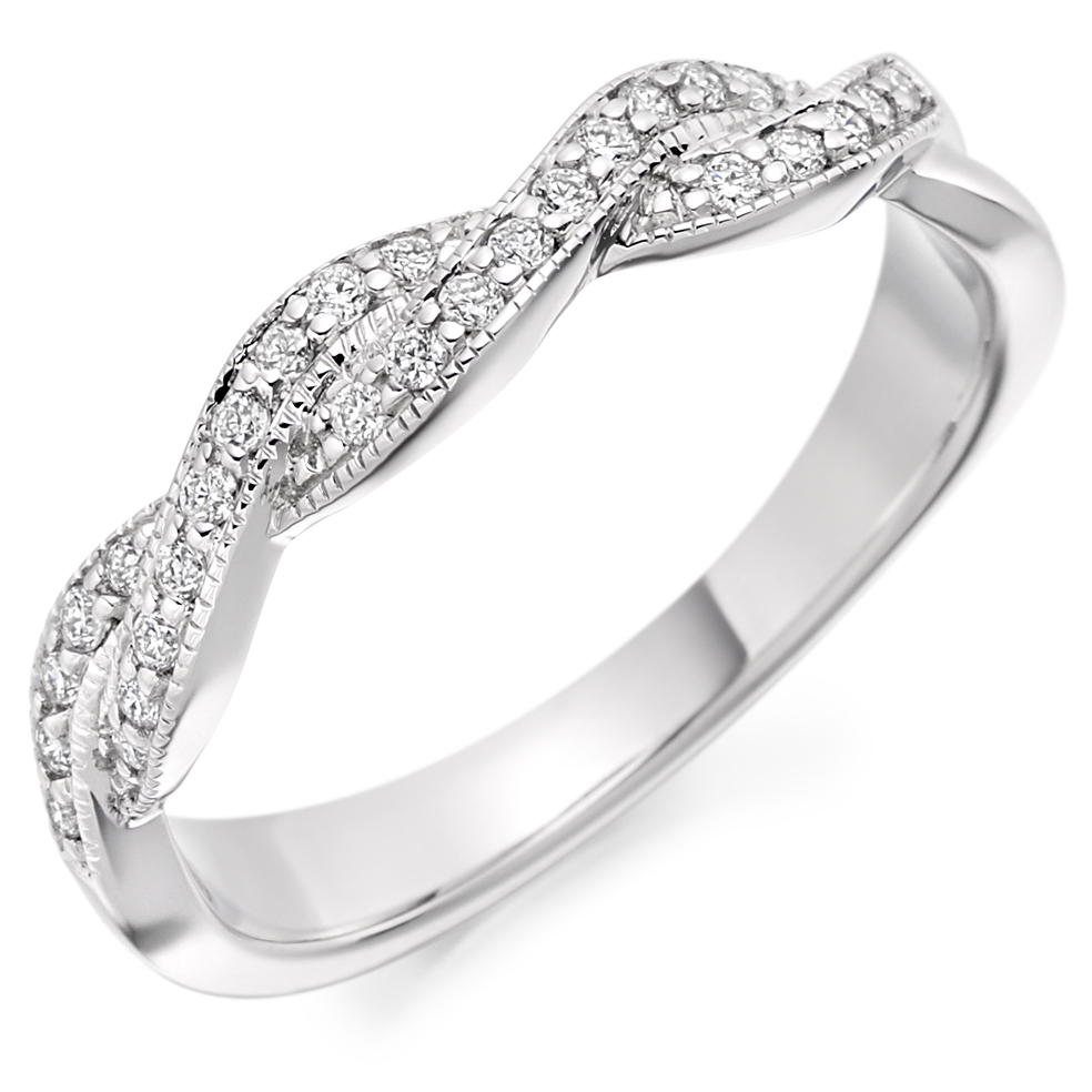 Platinum Round Brilliant Cut Diamond Eternity Ring , Pavé Style With Millgrain Edger